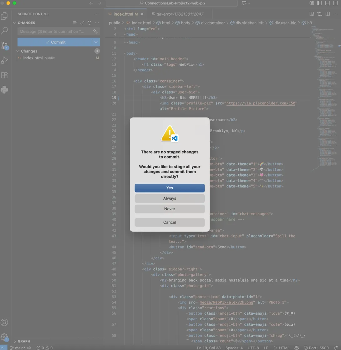 I handled all the frontend which was HTML structure, all the CSS styling, and some JavaScript for theme switching and making the bio editable. Veyda was on backend doing server setup, Socket.io for real time chat, and handling emoji reaction tracking.