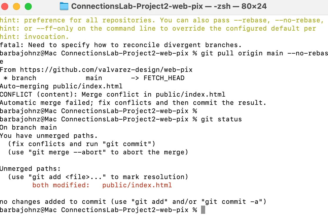 Git and GitHub was honestly one of the biggest challenges. We kept running into issues with divergent branches and merge conflicts because we were both working on files at the same time.